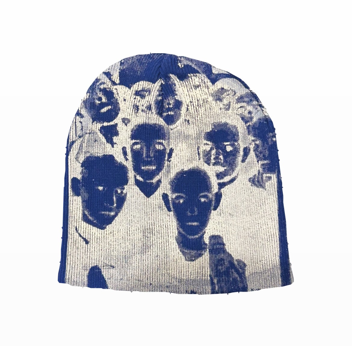 片面は全体を、もう片面は拡大バージョンをプリントしており気分によって前にするデザインを変えられるようにしました! 青のボディに白インクでプリントを施しています。