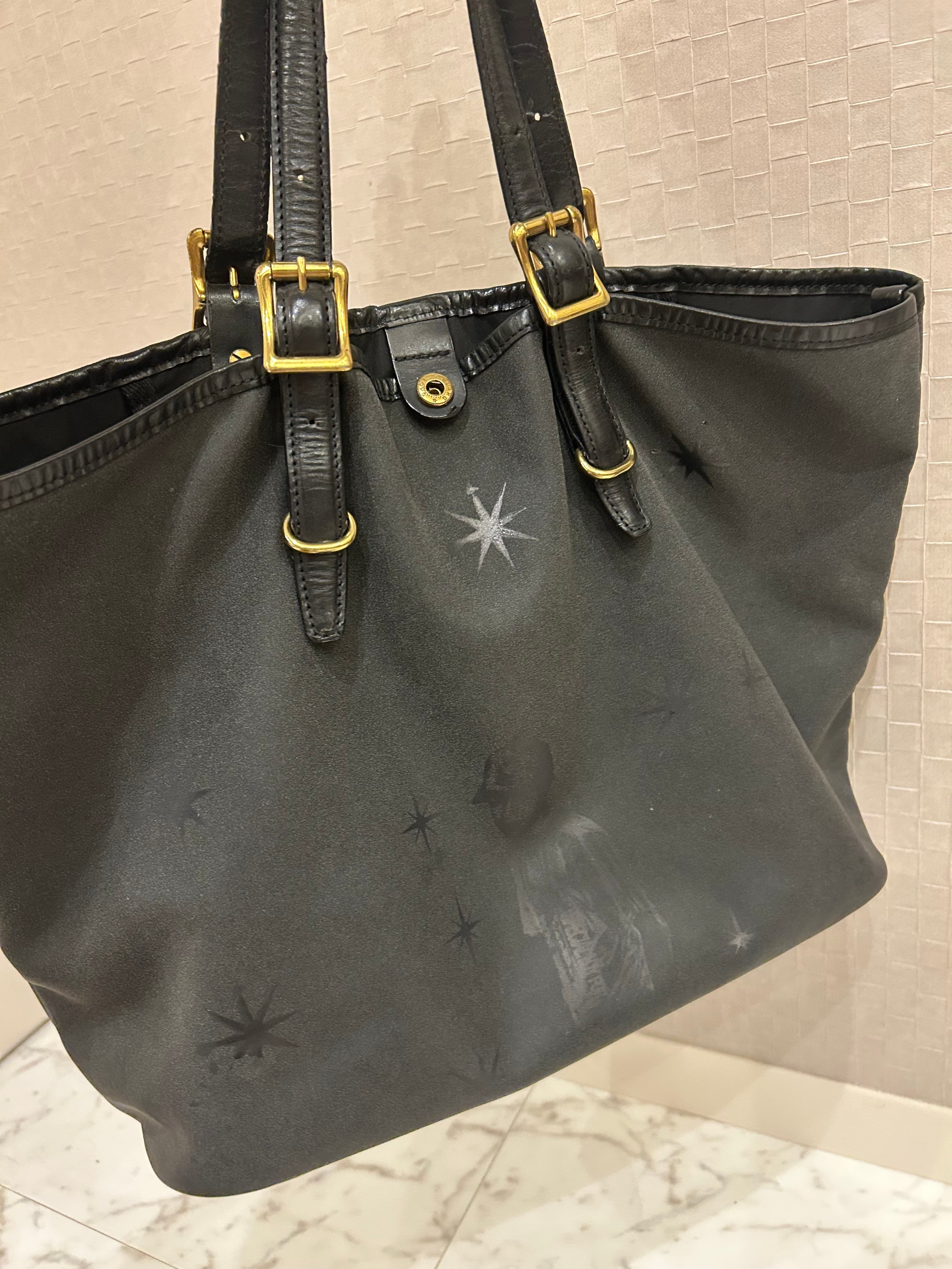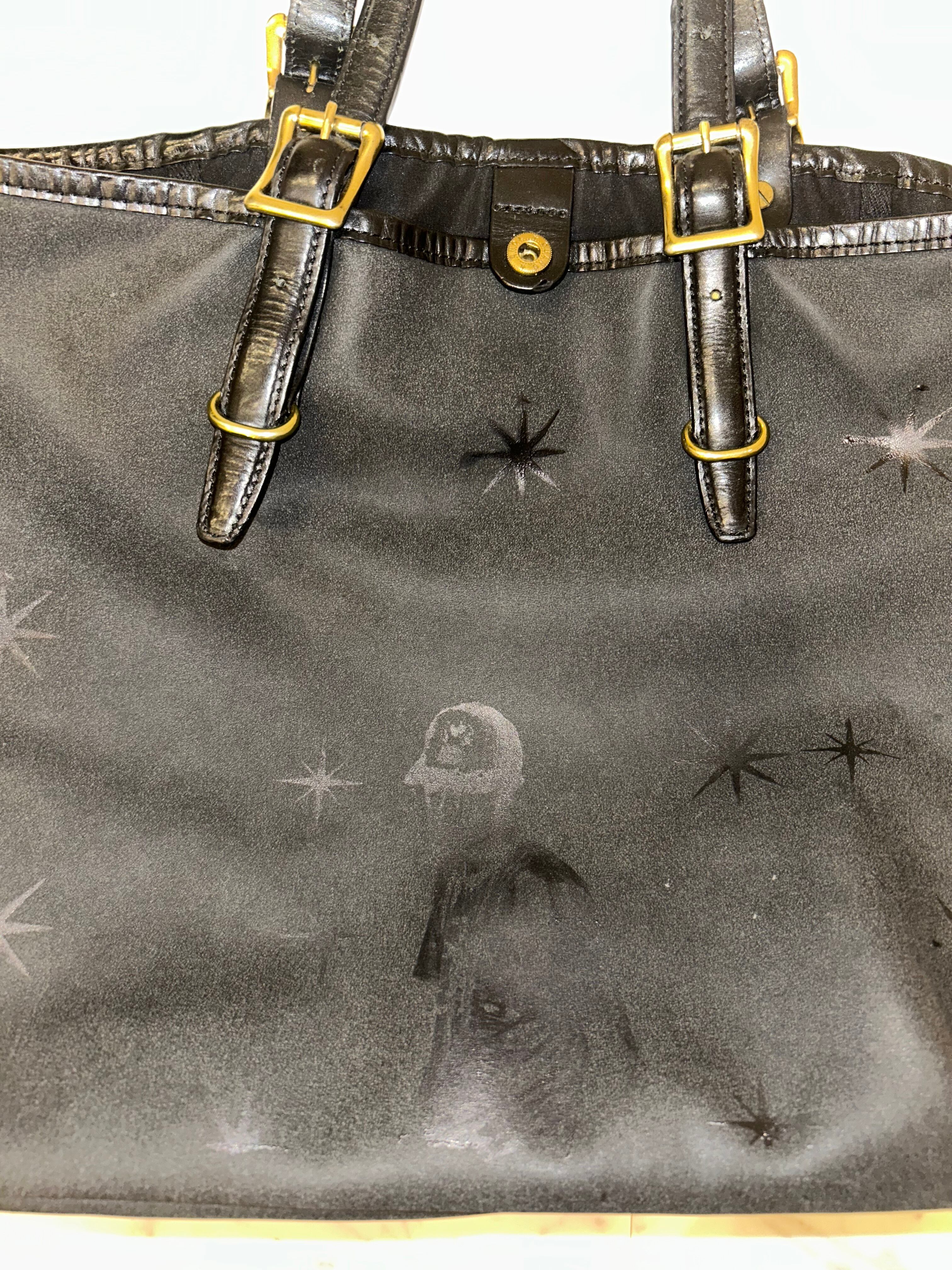 黒いバッグに黒いプリントしているのでぱっと見分かりづらいですが光が当たると出てきます!