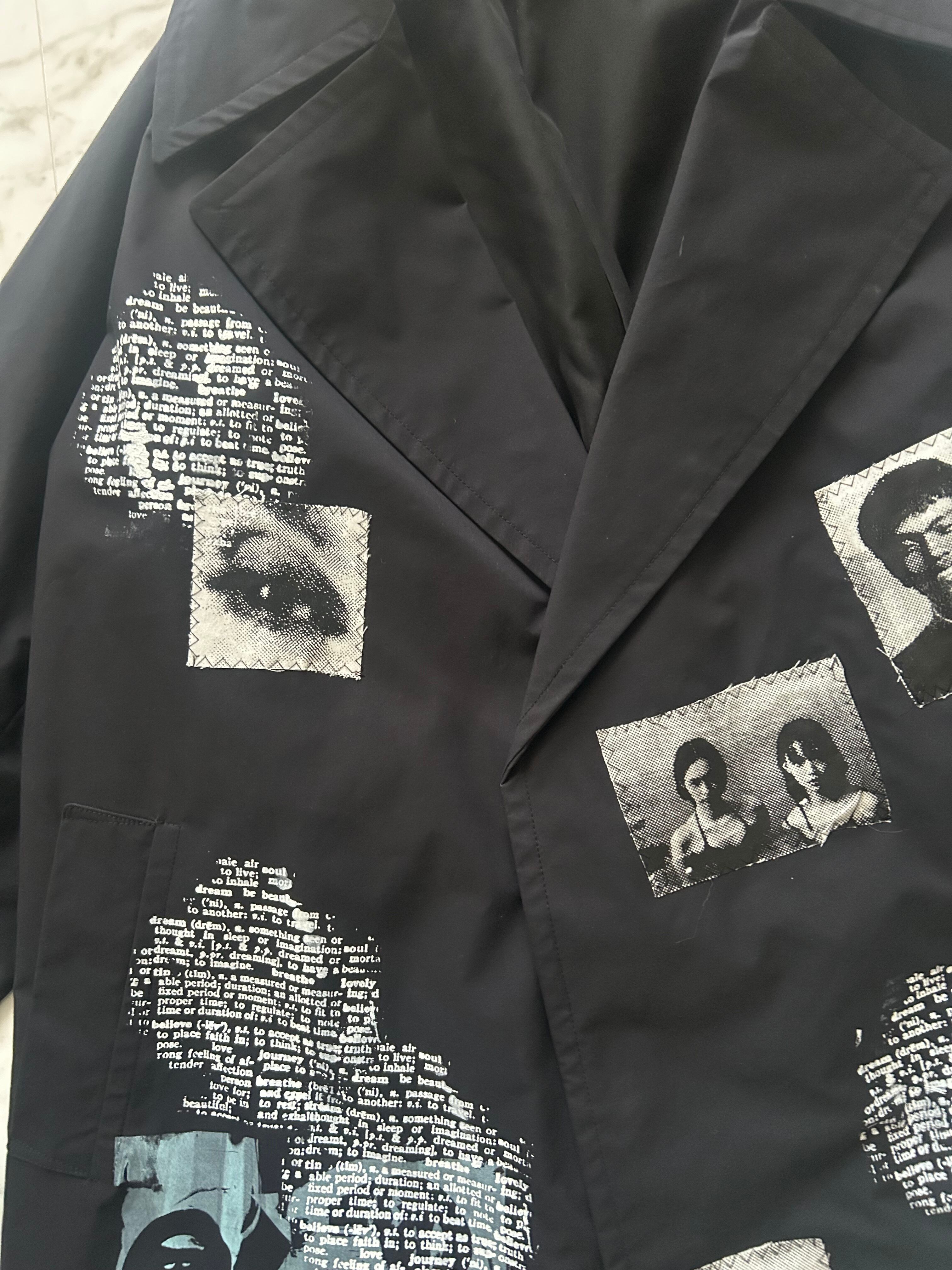 コートにプリントした布を縫い合わせたりした一点物です。コートは長めで風を通しにくくなってますのでまだまだ活躍すると思います。